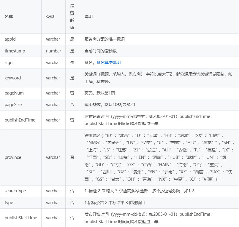 招投标信息垂搜接口