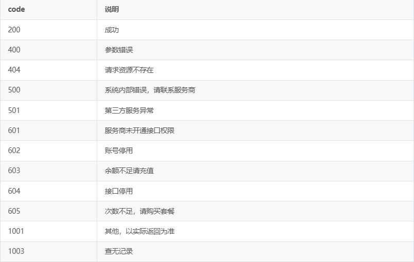 7. Code错误码说明